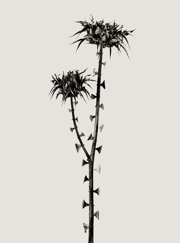 En ella crea, con objetos cotidianos y materiales reciclados, plantas y flores al estilo de los álbumes de las grandes expediciones botánicas del XVIII. Hasta que no te fijas con mucha atención, las fotografías de esas plantas, con inventadas taxonomías en latín, dan el pego y parecen imágenes de especímenes reales.